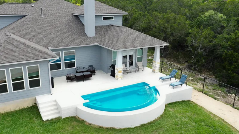 The Glimmer transforms your backyard into a statement of modern elegance. Its sweeping crescent shape and seamless spillover create a mesmerizing visual flow, while the infinity edge design adds the look and feel of a luxury retreat. A spacious flat-bottom layout makes it perfect for both conversation and play, offering a refreshing balance of beauty and functionality in one striking design.
